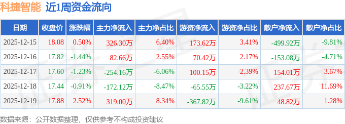 卓信宝配资线上 本周盘点(12.15-12.19):科捷智能周跌0.61%,主力资金合计净流入301.68万元